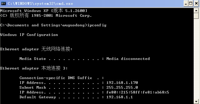 其中:IP Address。。。后面对应的“192.168.1.170”就是电脑的本地IP地址。