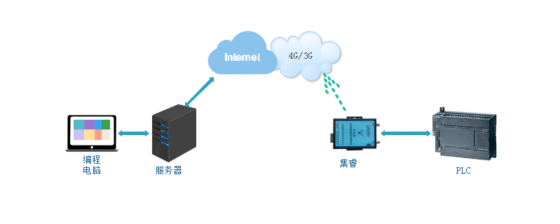 PLC远程升级:建立编程电脑和PLC之间的无线远程连接,可以对PLC进行远程控制,程序升级等。
